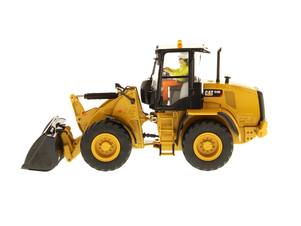 Kvalitný kovový model, detailne spracovaná kópia skutočného stroja, ktorým je 8 tonový kolesový nakladač CAT 910K.