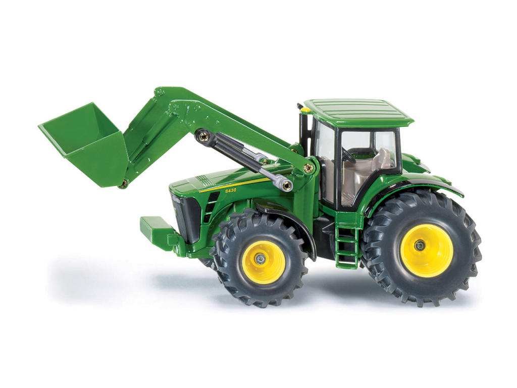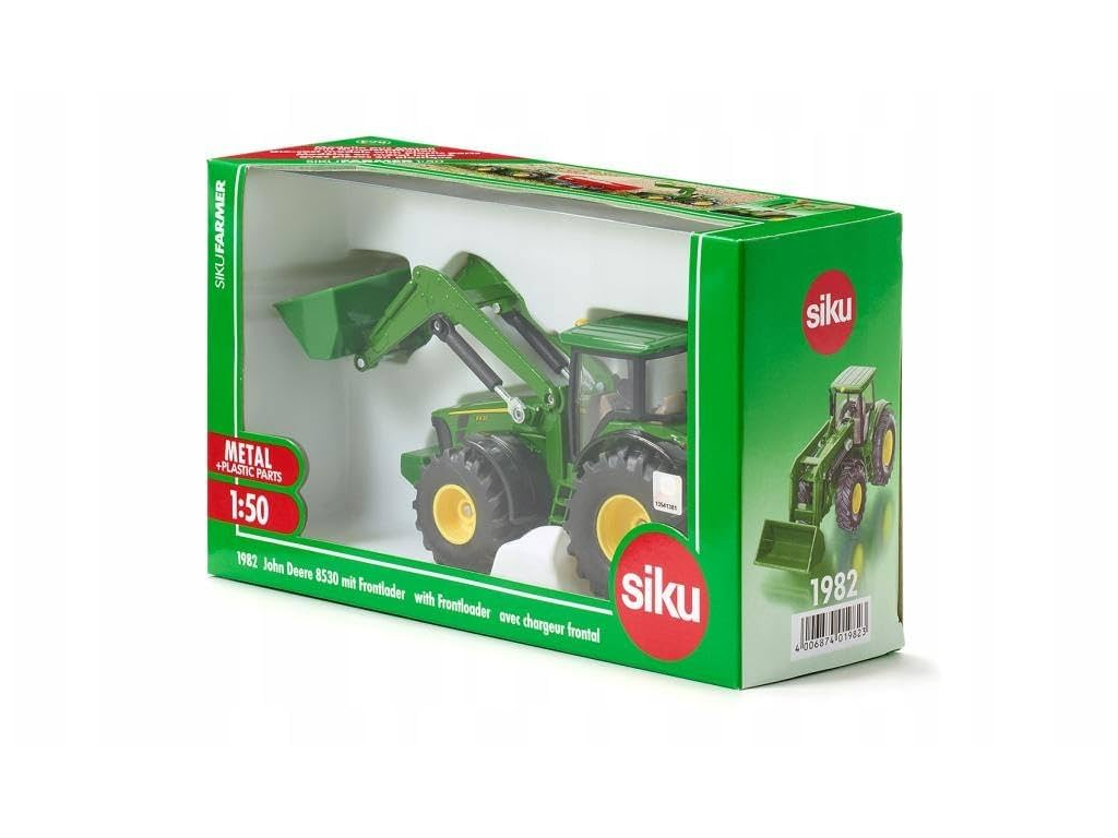 Ak hľadáte odolnú hračku, ktorá nezaberá veľa miesta, modely od nemeckého výrobcu SIKU sú jasnou voľbou. Tento kovový model kombinovaný s plastovými dielmi je dokonalá kópia skutočného stroja, ktorým je kolesový traktor John Deere 8430 s čelným nakladačom.