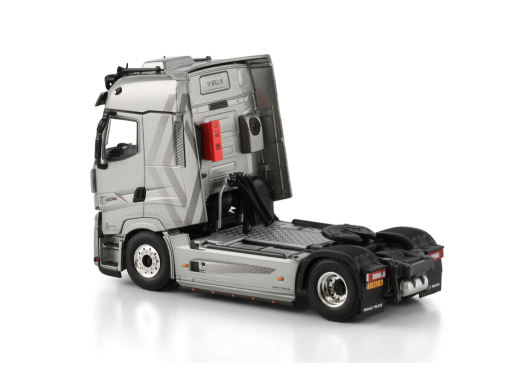Kvalitný kovový model v mierke 1:50, detailne spracovaná kópia skutočného auta, ktorým je ťahač návesov (kamión) RENAULT T HIGH EVO s konfiguráciou náprav 4x2. Tento model patrí do série Premium Line.